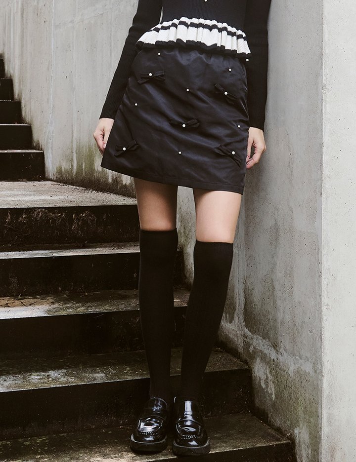 [샤틴] 진주 리본장식 패딩 스커트 O254T303