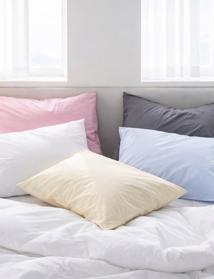 촘촘한 60수 고밀도 순면 원단으로 제작되어 피부에 닿는 촉감이 부드럽고 쾌적하며, 호텔식 침구처럼 깔끔하고 포근한 분위기를 완성해주는 프리미엄 베개커버