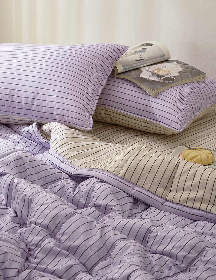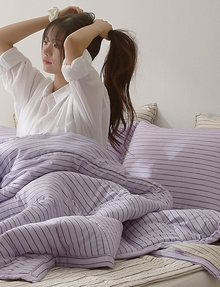 먼지 걱정 적은 세미마이크로 화이버 원단과 도톰한 퀼팅으로 포근함을 더한 모던 스트라이프 차렵이불