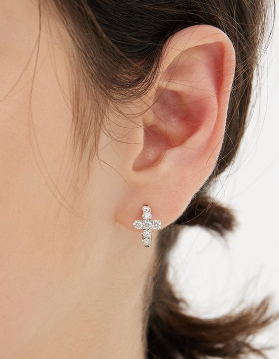 [이에르로르] 에센스 실버(W) 모이사나이트 크로스 원터치 귀걸이 (WHITE)