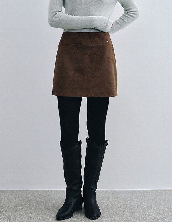 [로에일] 라이닝 스웨이드 미니 스커트 - 브라운