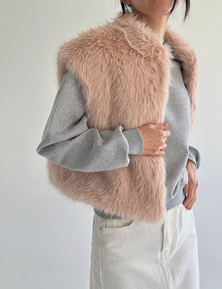 포근한 터치와 은은한 핑크톤이 어우러진 바이듀 무드의 퍼 베스트