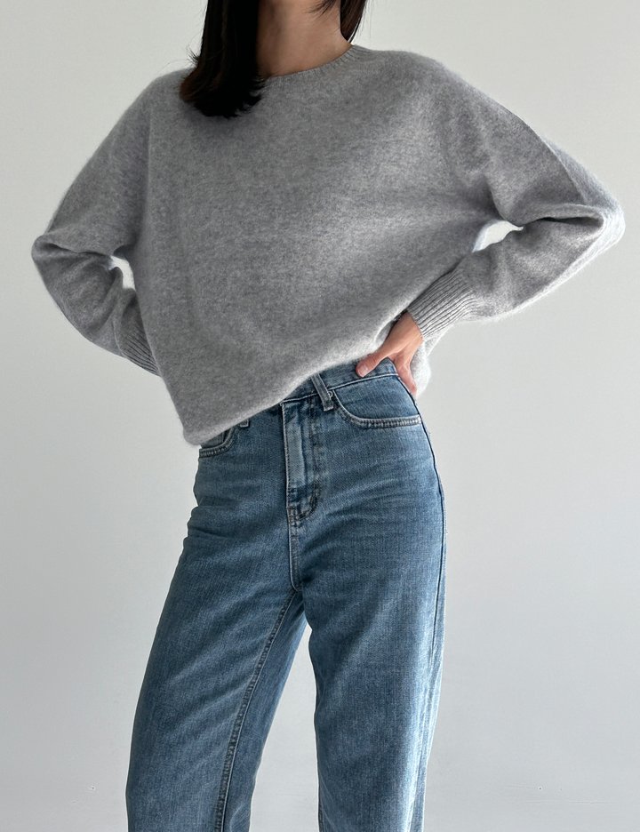 울/모95% 캐시미어5%의 부드러운 터치감과 몽글몽글한 헤어가 느껴지는 라운드 니트