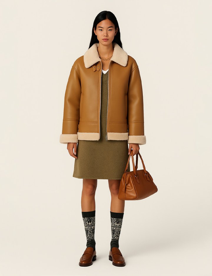 [로르서울]클래식 호주 양모 시어링 무스탕_SOJK250105