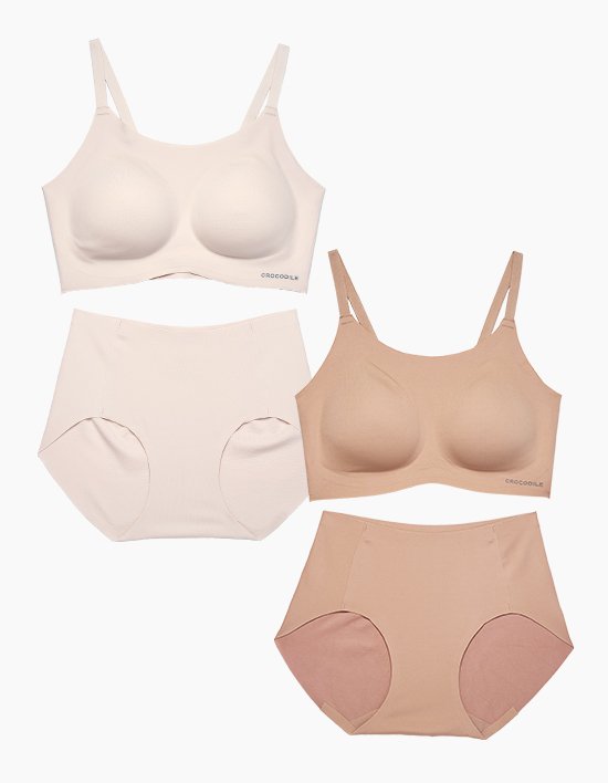 [크로커다일 감탄브라] 소프트 모달 스트랩 브라+팬티 2set (팬티 증정)