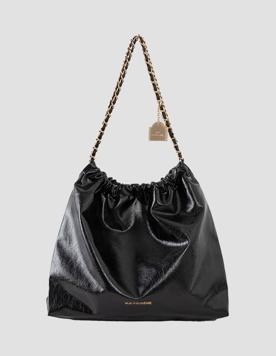 [뤼드유제니] 20K 골드체인 Synthetic Leather Small Hobo Bag (BLACK)