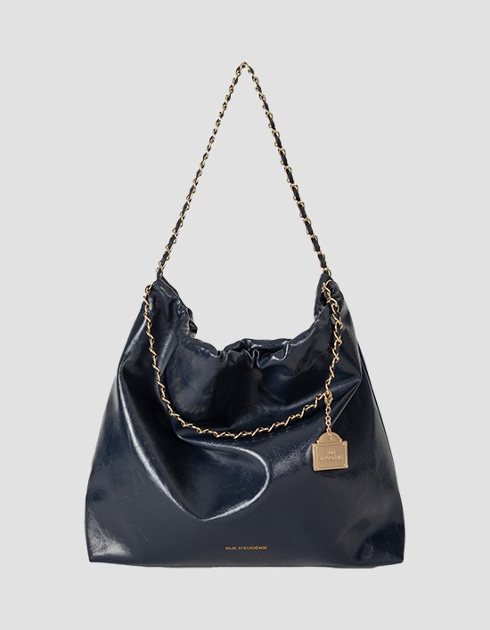 [뤼드유제니] 20K 골드체인 Synthetic Leather Small Hobo Bag (NAVY)
