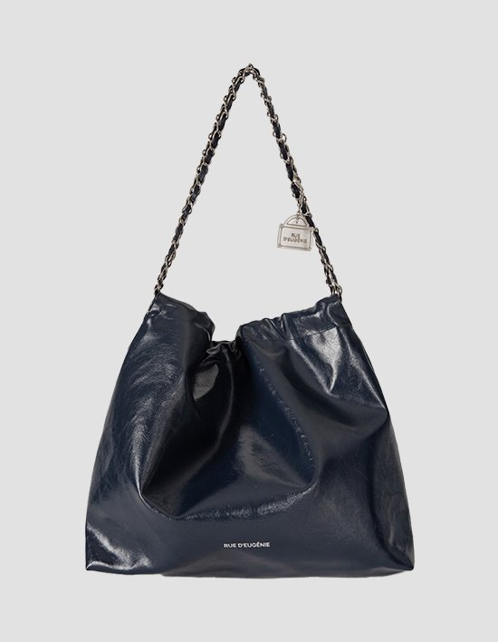 [뤼드유제니] 실버체인 Synthetic Leather Small Hobo Bag (NAVY)