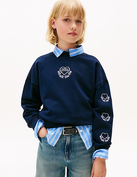 앞면에 러블리한 하트 자수가 포인트로 들어간 테리 스웨트셔츠입니다.부드럽고 신축성 있는 코튼 소재로 제작되어 편안한 착용감을 선사하며,