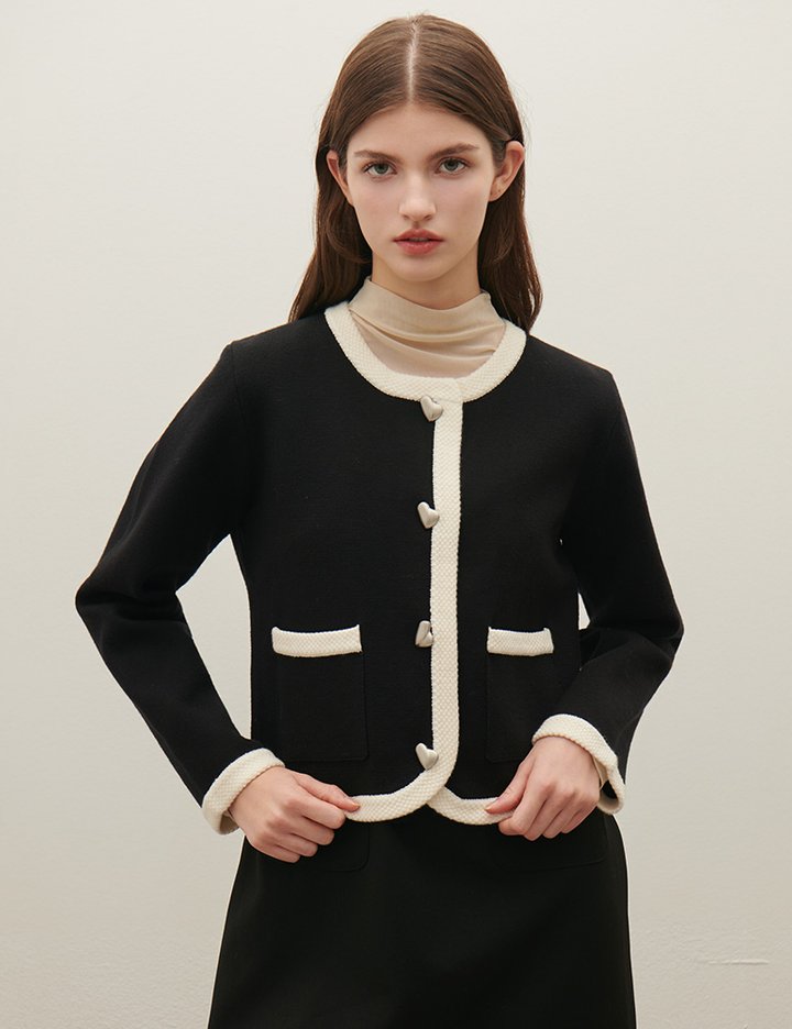 [샤틴] 하트버튼 배색 라운드 가디건 O254T923