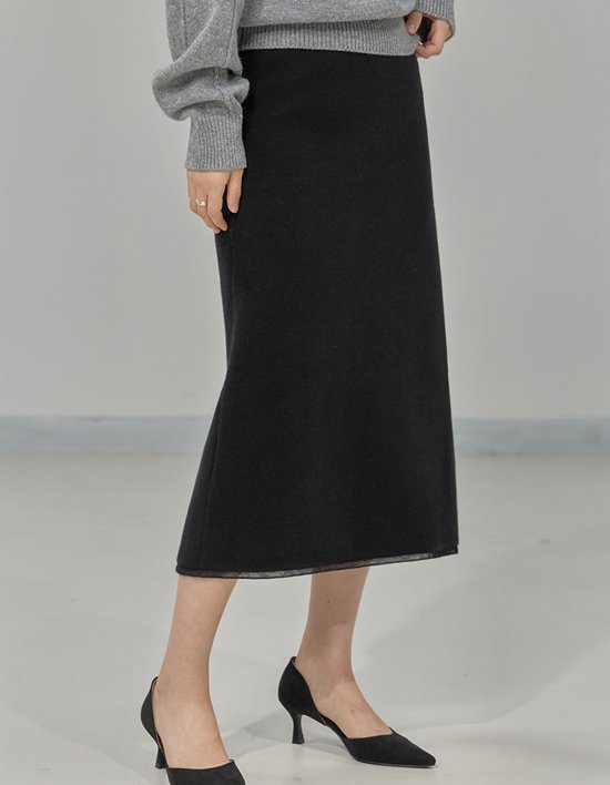 부담스럽지 않은 세미A라인 니트 스커트에요, "신축성이 있는 상품으로 44-77분들까지 예쁘고 편하게 착용 가능해요 :) "