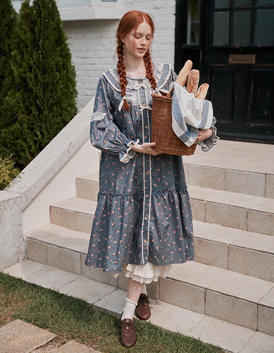 [울랄라 파자마] 앤의 꽃말 긴팔 원피스 그레이 (30수) FREE