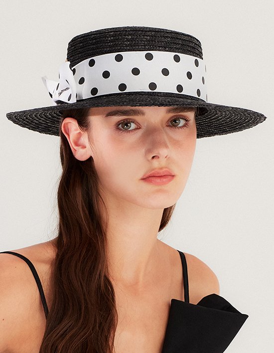 [멜라밀라] 도트 리본 왕골 보터햇