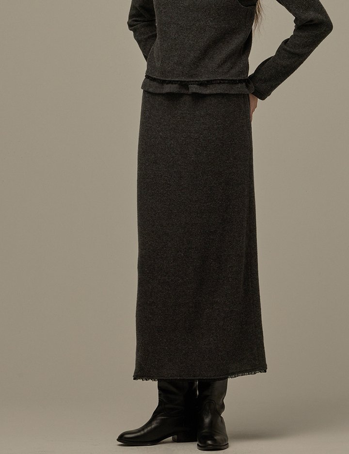 [비뮤즈맨션] 레이스 에이치라인 스커트 차콜