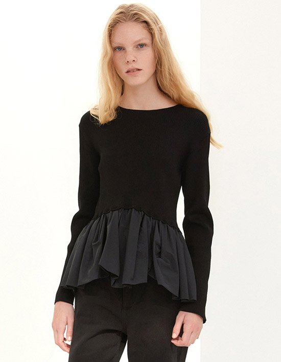 [제이청] 텍스처 러플 헴 니트 풀오버_블랙