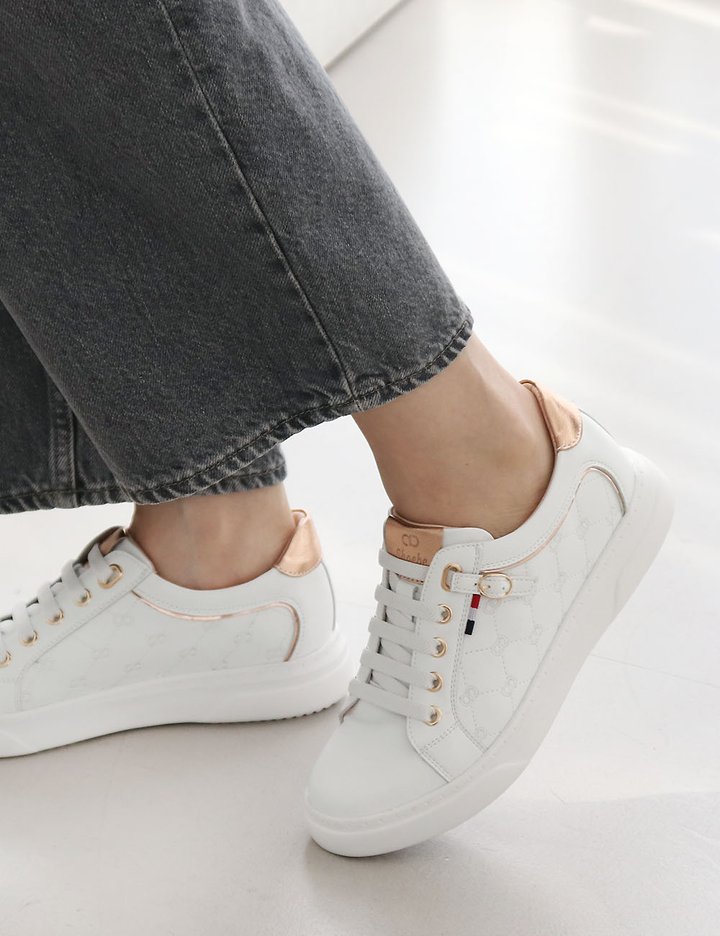 [원더슈즈] 천연소가죽 로아느 발편한 가벼운 쿠션 밴딩 스니커즈 운동화 4CM