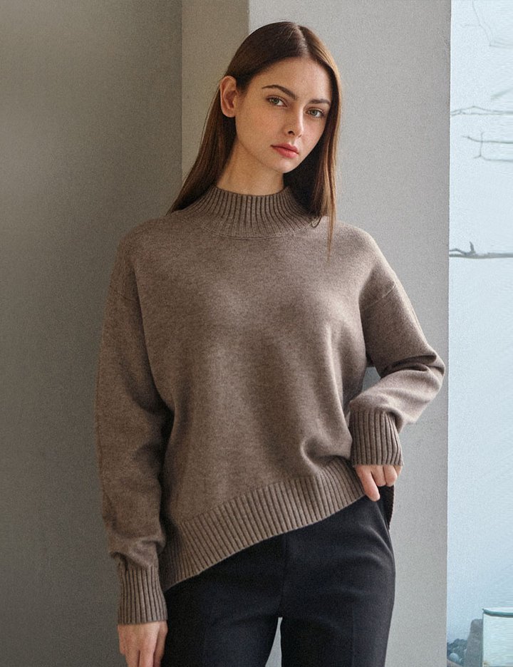 [블랑유] 플로우드 하프넥 슬릿 니트 4 colors (택 1)