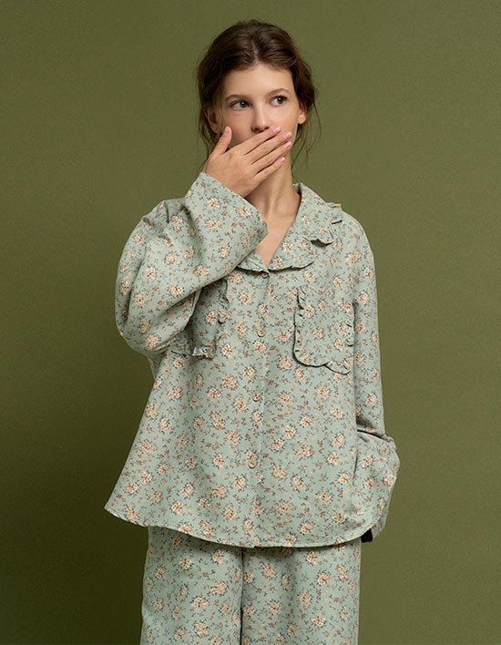 [울랄라 파자마] 베이직 로망 긴팔 여성페어 애쉬그린 (75D)