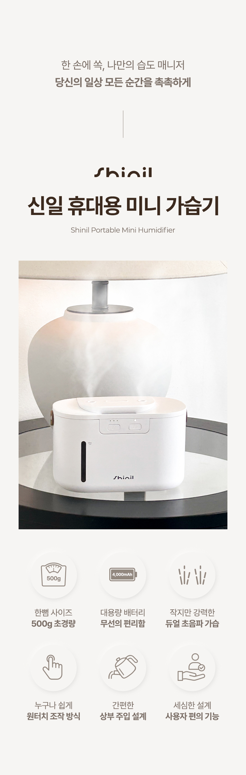 작지만 넓게 퍼지는 촉촉함, 한 손에 쏙 나만의 가습기