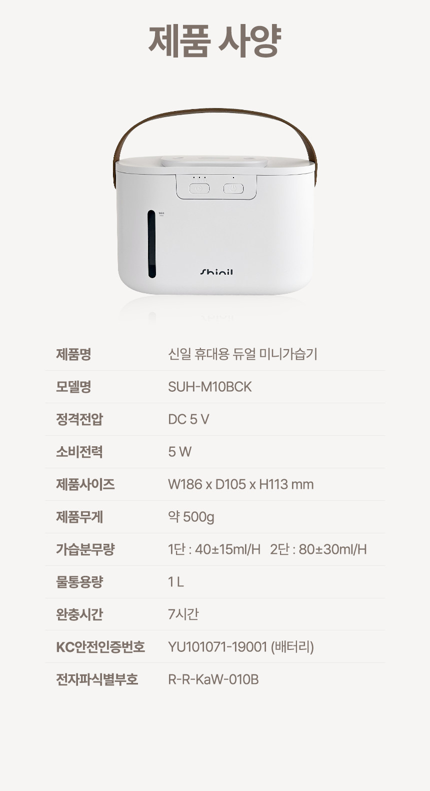 [신일] 무선 미니 가습기 1L (단품)