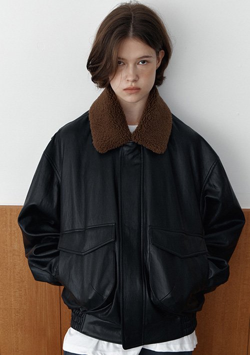 루즈핏 점퍼스타일의 레더자켓입니다. 퍼카라가 탈부착되는 스타일로 두가지스타일로 연출이 가능합니다.