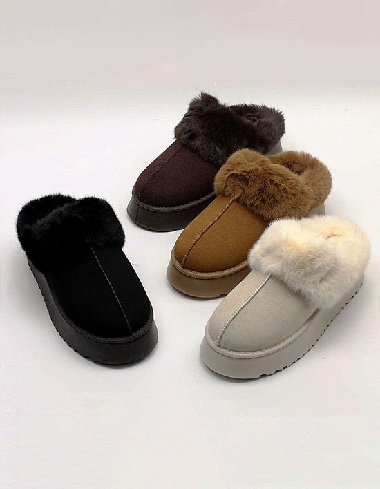 [원더슈즈] 에나벨 발편한 가벼운 쿠션 통굽 어그 털 슬리퍼 5CM