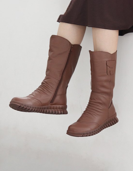 [원더슈즈] 천연소가죽 아젤라 발편한 가벼운 쿠션 기모 안감 미들 롱 부츠 4CM