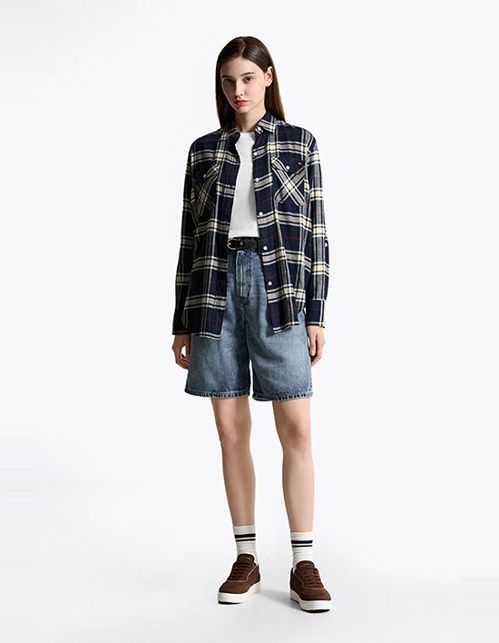 Fit: 레귤러 핏부드럽고 따뜻한 플란넬 원단으로 제작된 보이프렌드 핏 체크 셔츠로, 여유 있는 실루엣과 롱 기장으로 편안하게 착용