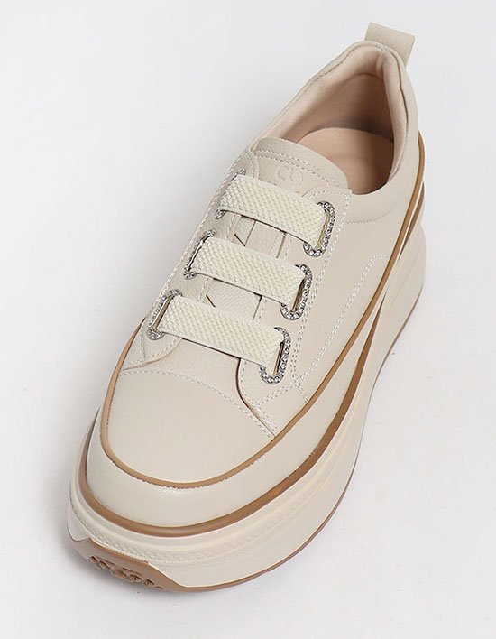 [원더슈즈] 천연소가죽 라베니 발편한 가벼운 쿠션 밴딩 스니커즈 운동화 6CM