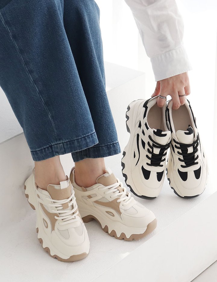 [원더슈즈] 천연소가죽 스매드 발편한 가벼운 쿠션 키높이 스니커즈 운동화 7CM