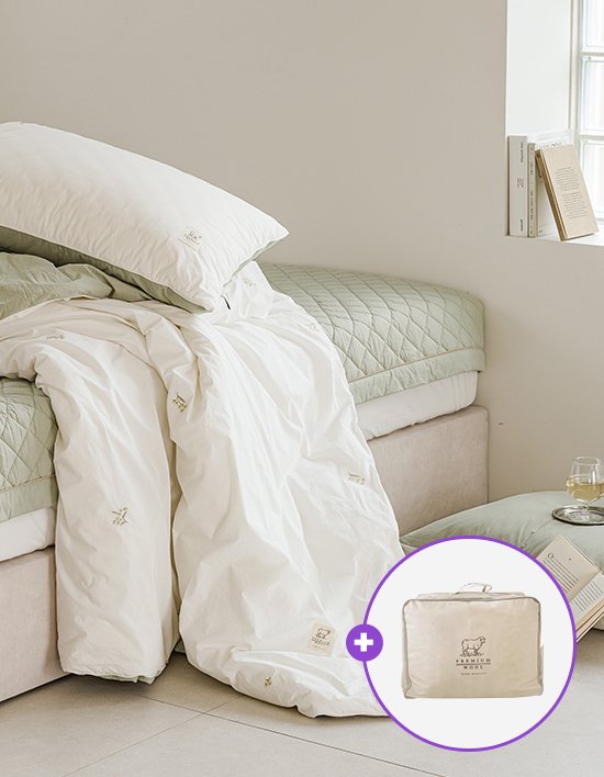 겉소재: 60수 고밀도 순면100% / 충전재: 호주산 양모+옥수수(인지오)솜