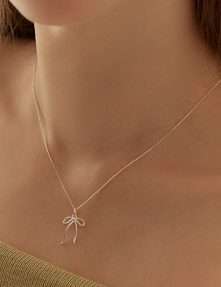 [르웨](+진주귀걸이 증정) Line ribbon necklace (단품) (Silver)