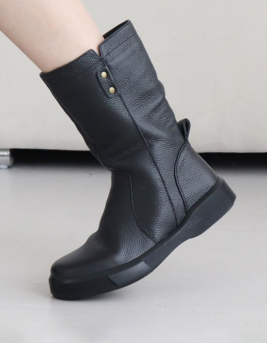 [원더슈즈] 천연소가죽 카린느 발편한 가벼운 쿠션 통굽 미들 부츠 4CM