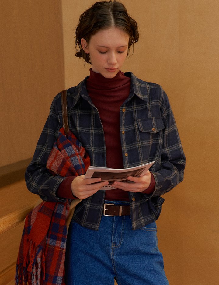 [피그먼트] 피치격자체크남방/셔츠