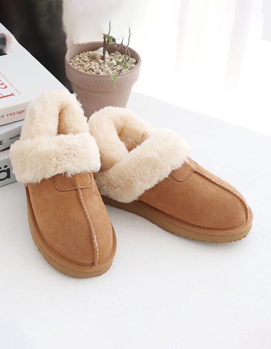 [원더슈즈] 천연소가죽 센티드 발편한 가벼운 쿠션 탈부착 어그 털 슬리퍼 3CM