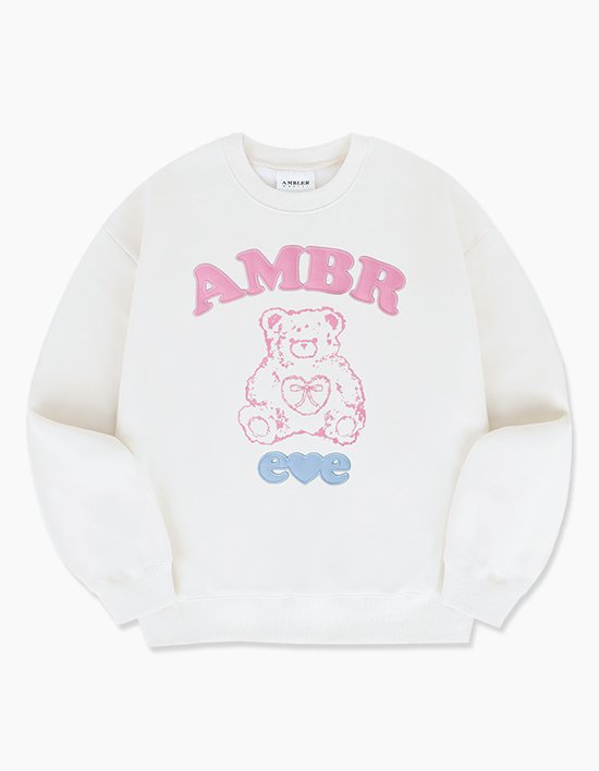 [엠블러] Lovely bear 자수 기모 맨투맨 티셔츠 AMM1324 아이보리 (택1)