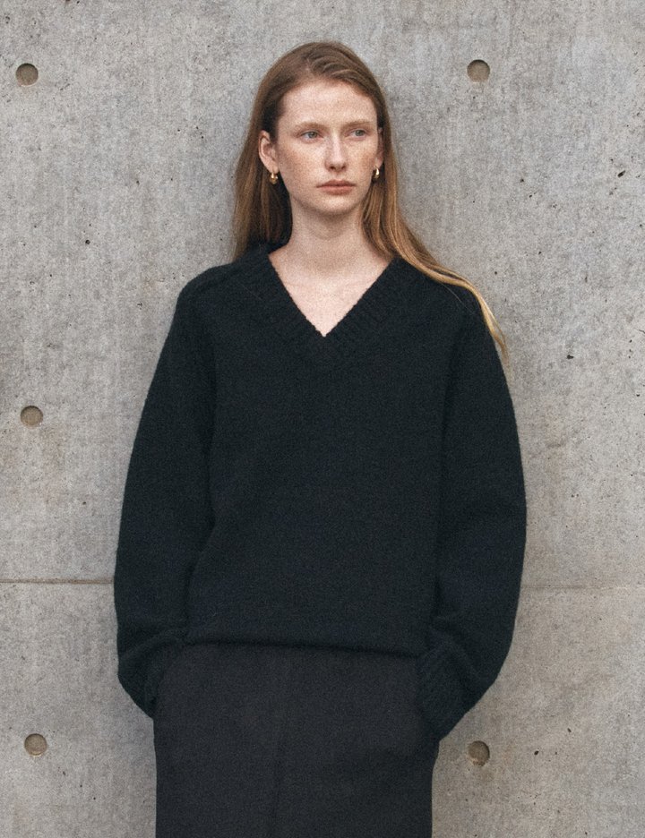 [시야쥬] 루즈 핏 브이넥 헤비 니트_블랙 (SIKN2170)