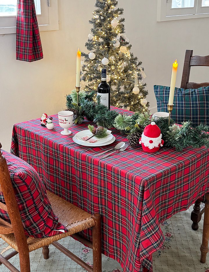 크리스마스에 가장 잘 어울리는 레드와 그린 체크로 제작한 식탁보 입니다. 레드는 기본 타탄 체크색감 그린은 네이비 컬러와 믹스되어 좀더 고급스러운 색감으로 풍성하고 감각적인 테이블 스타일링을 도와줍니다.