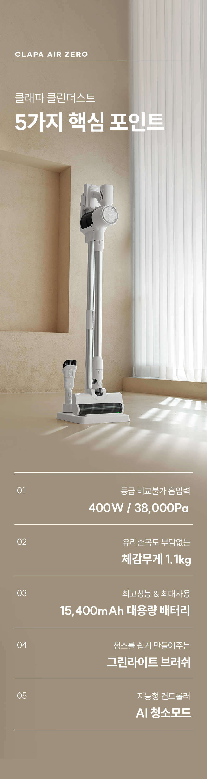 [클래파] NEW AI 흡입 BLDC 무선 청소기 + 자동 충전 거치대