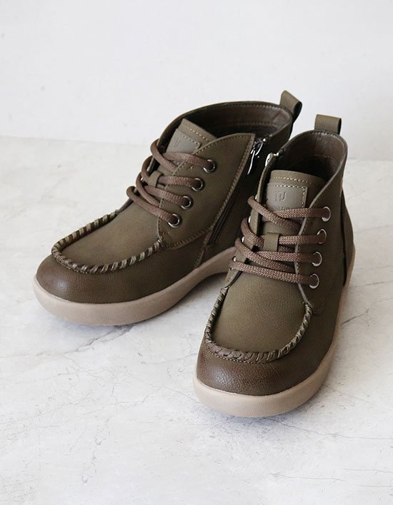 [원더슈즈] 하디스 발편한 가벼운 쿠션 통굽 밴딩 워커 부츠 4CM