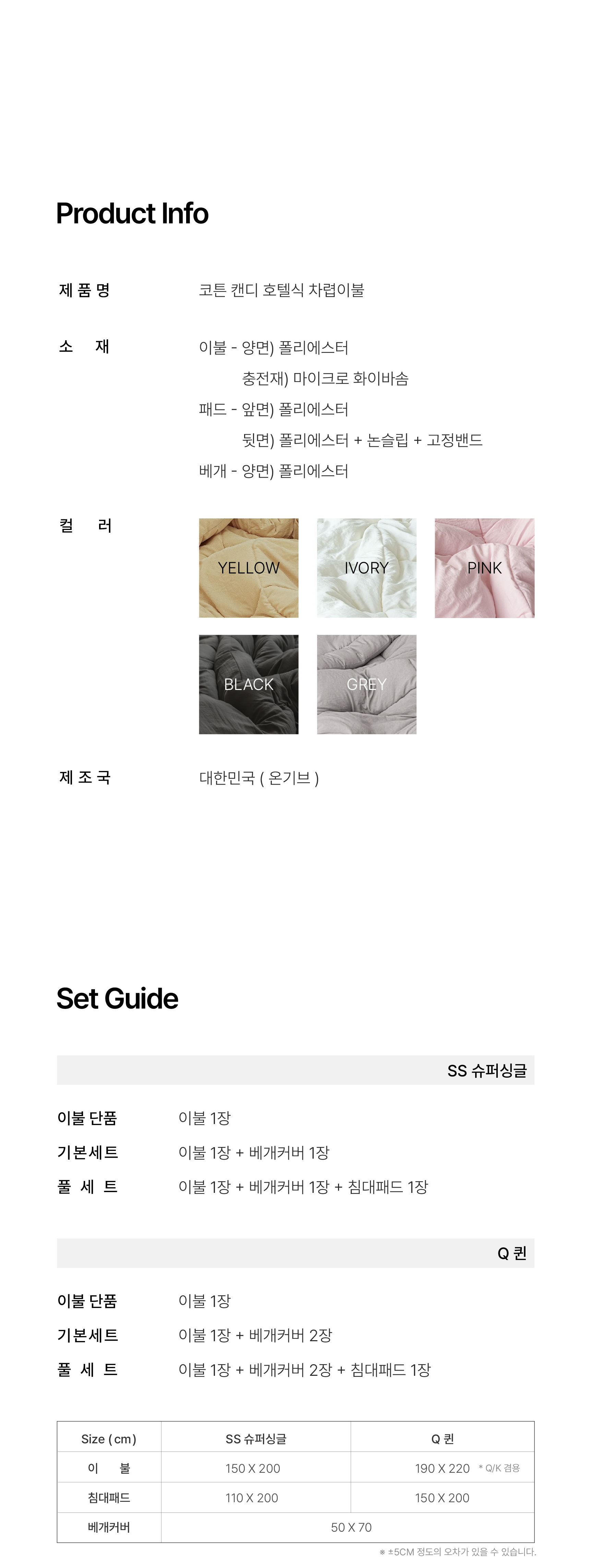 [온기브] 코튼 캔디 호텔식 차렵이불 5종 (택1)