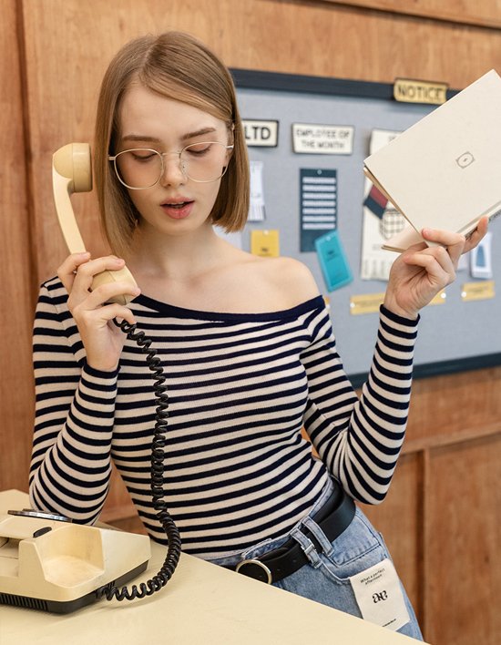 [논앤논] 언발란스 오프숄더 니트_NNKN0007(네이비)