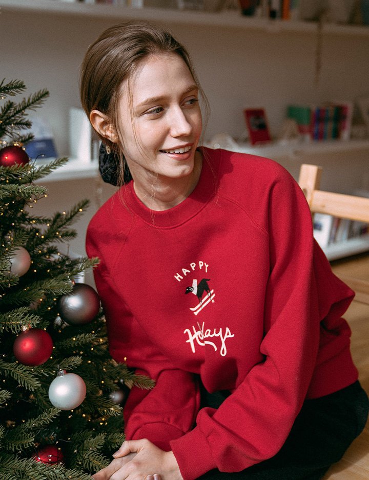 [시야쥬] 홀리데이 스키독 나염 맨투맨_레드 (SITP5239)