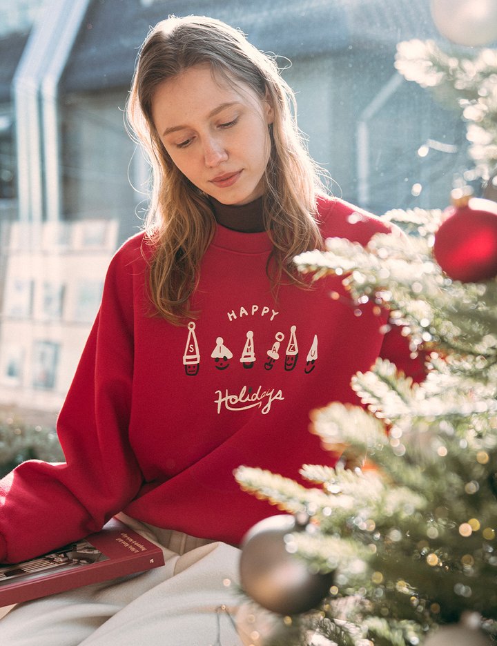 [시야쥬] 홀리데이 산타 나염 맨투맨_레드 (SITP5240)