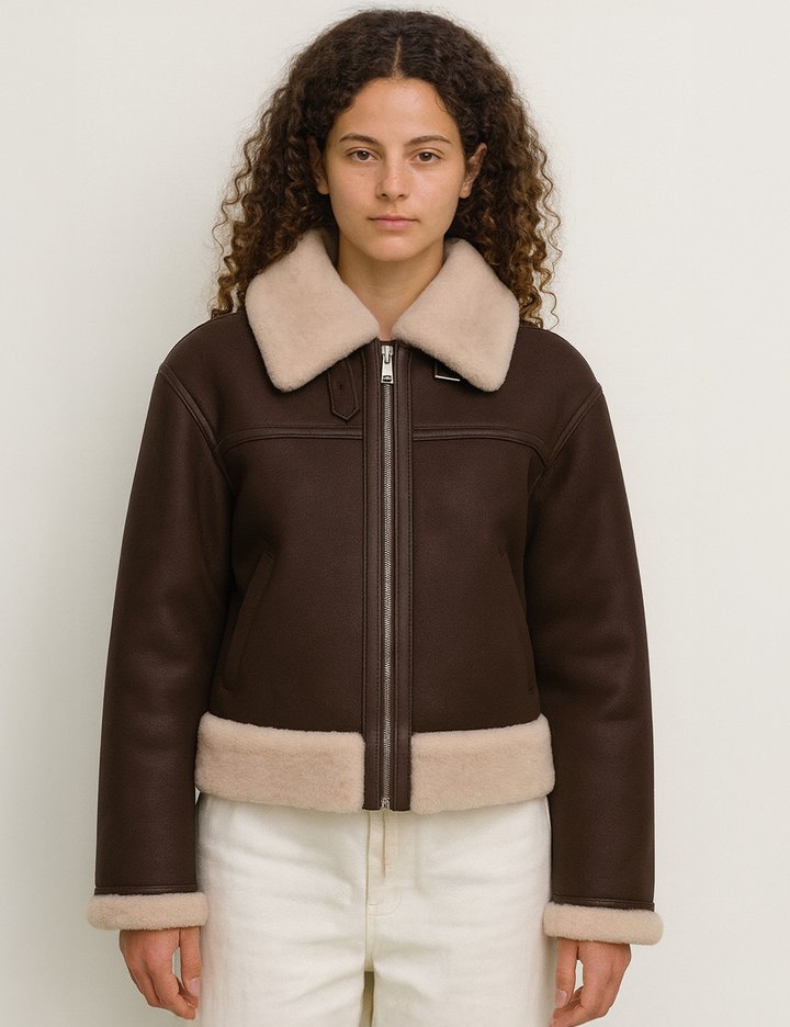[로르서울]시그니처 크랙 레더 양모 시어링 리얼 무스탕_SOJK251106