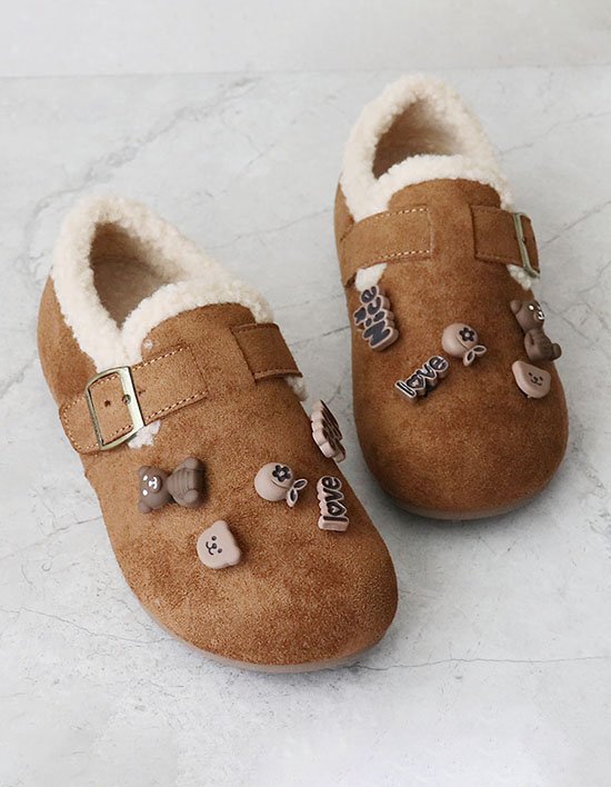 [원더슈즈] 헤이튼 발편한 가벼운 쿠션 기모 안감 어그 털 로퍼&단화 3CM