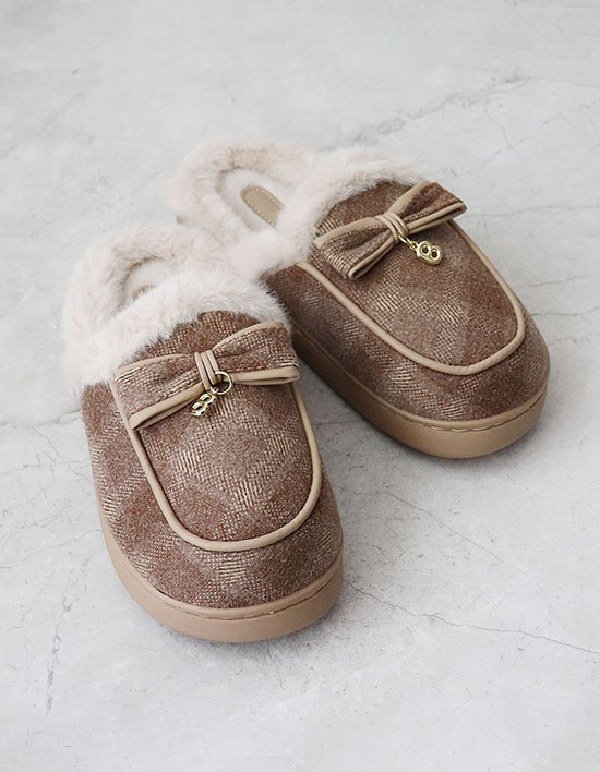 [원더슈즈] 체크니 발편한 가벼운 쿠션 기모 안감 어그 털 슬리퍼 3CM