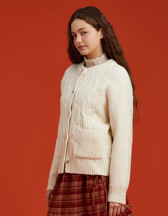 [써스데이 아일랜드] 케이블 라운드넥 니트 가디건_T258MCD246W