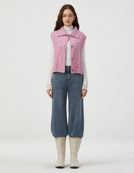 [써스데이 아일랜드] 카라넥 케이블 니트 베스트_T258MVT234W