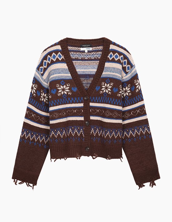 [써스데이 아일랜드] 자카드 브이넥 니트 가디건_T258MCD936W